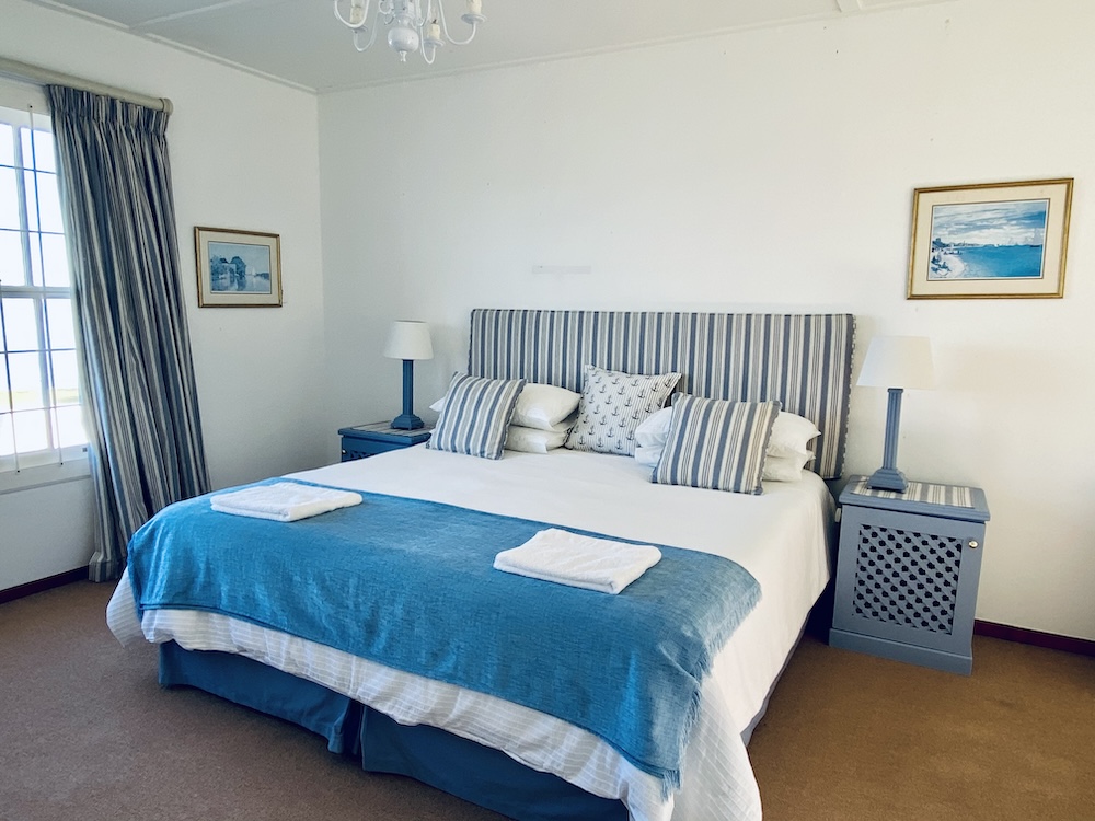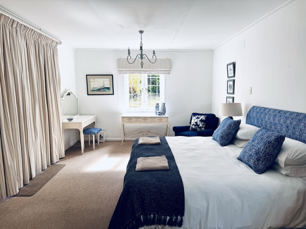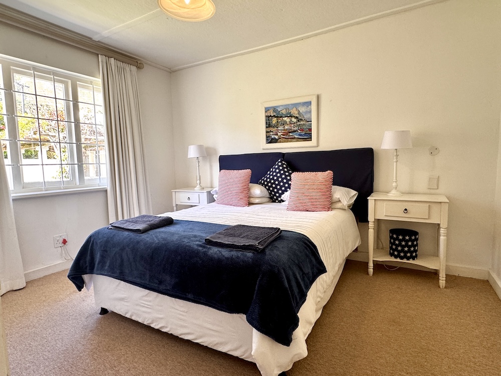 This bedroom is in a separate cottage with access from the enclosed back garden and has views of the lagoon